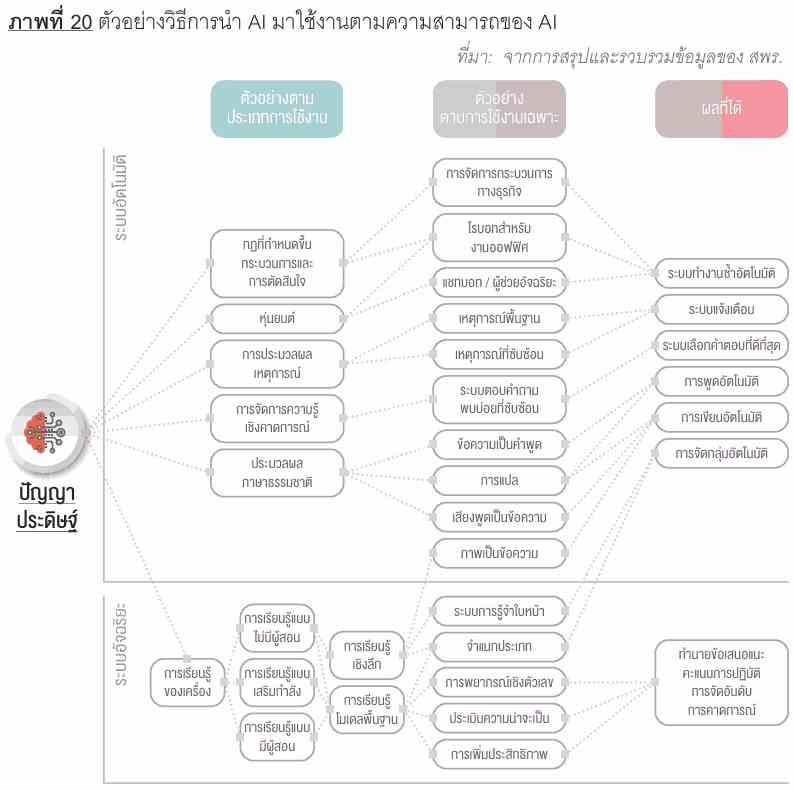 สำนักงานพัฒนารัฐบาลดิจิทัล (องค์การมหาชน). (2562). เทคโนโลยีปัญญาประดิษฐ์สำหรับการบริหารงานและการบริการภาครัฐ. กรุงเทพฯ: สพร.